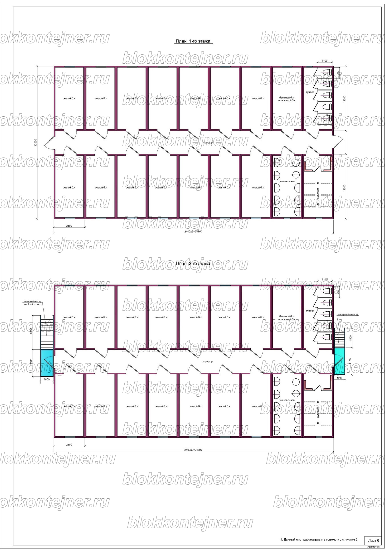Двухэтажное общежитие из 36 БК, на 100 человек